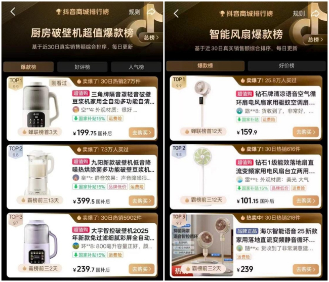 小家电品类频登榜单前三