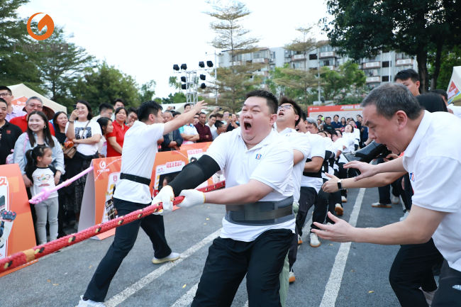 赛场之上,全运“更快、更高、更强、更团结”的精神与轻工人的拼搏底色、协作精神碰撞交融。定向挑战赛道上,队员们化身“全运智慧探险家”,以全运健儿为榜样打破思维桎梏、精准研判路线,在疾行穿梭中上演速度与谋略的双重博弈,每一次精准转向、每一次默契接力都尽显创新风采;拔河赛场更是燃点密集,参赛队员们脚蹬实地、身向后倾,紧握长绳的双手青筋微显,口中齐喊的号子铿锵有力,心往一处想、劲往一处使,用钢铁般的坚韧毅力诠释着“人心齐,泰山移”的团结伟力,复刻了全运赛场上的热血与坚守。看台上,助威声、呐喊声、加油声浪此起彼伏,与赛场上的拼搏身影交相辉映,将现场氛围推向一个又一个高潮。
