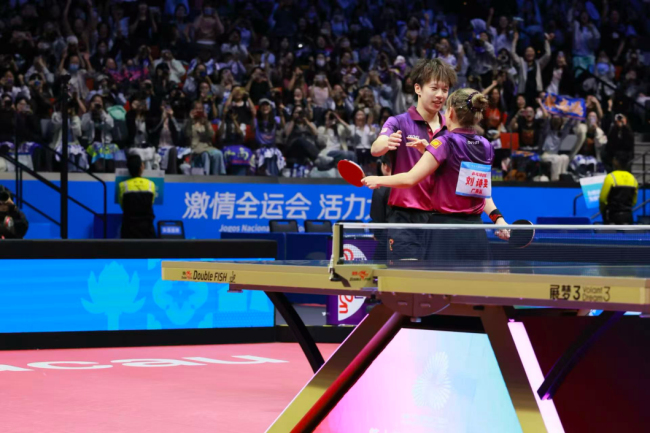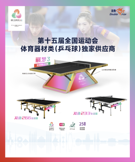 这枚凝聚汗水的金牌,不仅是两位运动员“永不言弃”拼搏精神的见证,更彰显了双鱼公司“生产顶级器材、提供优质服务”的冠军基因;从国际赛事级球台到毫米级“鹰眼+AI”系统,是双鱼公司数十年如一日对乒乓球事业的执着坚守;从产品研发的精益求精到赛事服务的细致入微,是双鱼公司以十五运会为舞台,生动诠释“向新、向上、向未来”企业精神、弘扬“真诚、创新、利他、共享”企业核心价值观的生动实践,更是推动民族品牌在新时代焕新的使命担当。